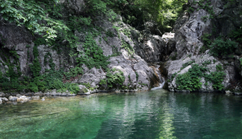向着京畿道最北端被称为道马峙溪谷的地方,在加平赤木里方向市内公交终点站的龙水洞村经过 3.8 桥后,顺着无人溪谷不停 地向上走,会沉迷于沿着路边展开的极致景色。 这里是环境厅考核的道内唯一的清洁区域,生活着天然的纪念物鲑。 从 3.8 桥向上游 3km 的地方有叫做龙沼的沼泽地,这里水深而清,传说龙升天的时候被一个怀孕的女人看见了,龙就坠落下了 形成了这片沼泽。 经过龙沼,再经过一个小时不停的攀登,大大小小的瀑布和沼泽分布,最后到了巨大的瀑布前。据传,武官们以野菜为下酒 菜喝酒,在这里跳舞玩乐。被称为无酒债瀑布,此处景观秀丽,在炎夏也能感到凉意。