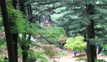 加平郡整体面积的 84% 为山岭,所以不管走到哪里都可以看到山林茂密,错落有致。 特别是山林的 70% 以上由松树组成,更能突出柏林的雄伟。 众所周知,加平郡生产的松子占全国生产量的大约 40% 祝灵山的柏林作为由 37 号国道(林草里) 4 公里处生长的 30 ~ 50 年 生松树组成的总面积 4.358 ? 的林间休养地,是由位于海拔 879m 的祝灵山边缘的京畿道所有的采种林组成的。 在夏日进入柏林中的话,会身心沉醉于松树散发的松脂味道,从深深的溪谷流出的清水和奇岩怪石也会映入眼帘。