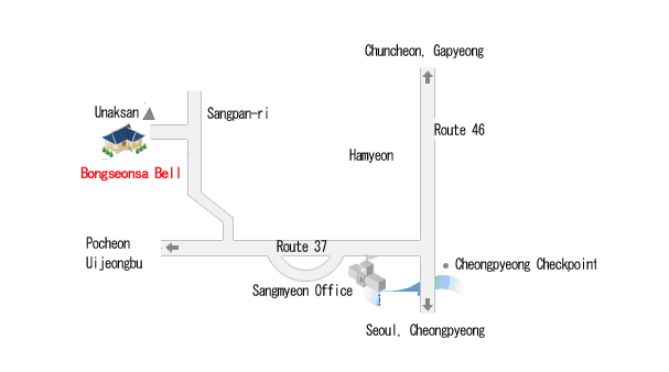 - 首尔 → (46 号国道 ) 清 平 → 清 平 检查 站 ( 左 转 ) → (37 号国道 ) 县里 → 云岳山
